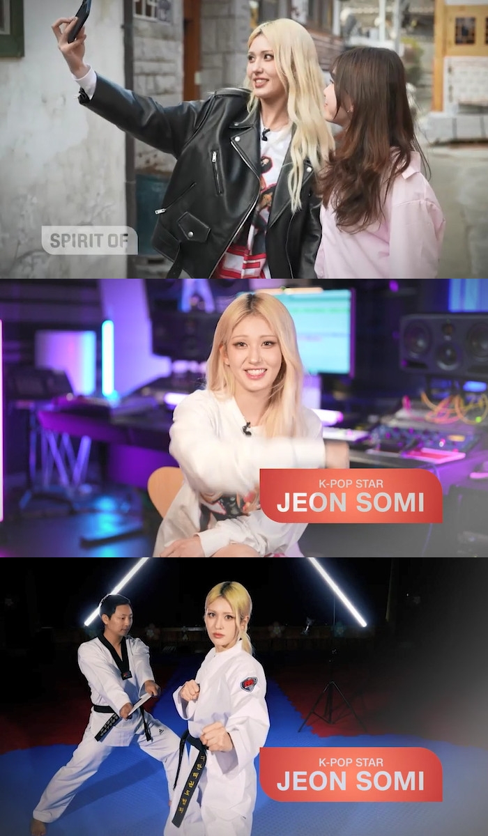 먼저 전소미는 한국의 전통무예이자 국기인 태권도를 소개했다. 태권도 4단 보유 기록을 자랑하는 전소미는 날렵하게 시범을 보이는가 하면, "태권도는 제게 매우 중요한 의미를 지닌다. 제 인격을 형성하는 데 도움이 된 스포츠다"라며 자긍심을 드러냈다.