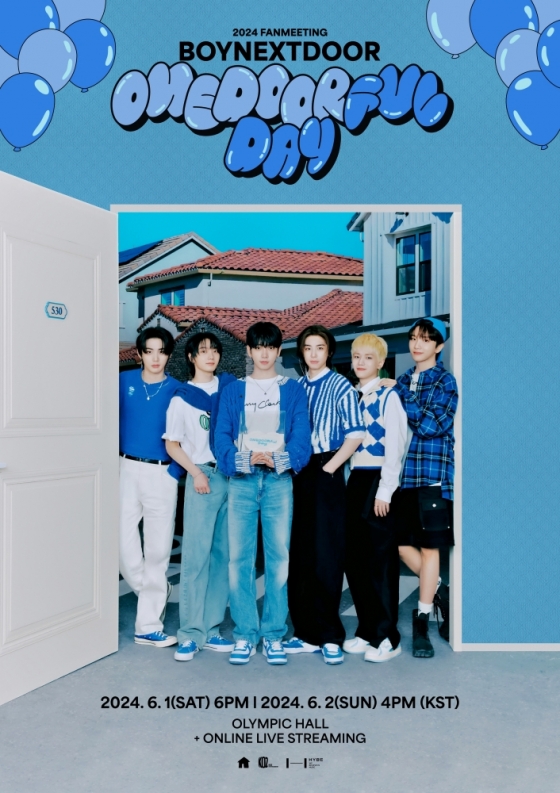 보이넥스트도어(성호, 리우, 명재현, 태산, 이한, 운학)는 25일 팀 공식 SNS 채널과 글로벌 팬덤 라이프 플랫폼 위버스(Weverse) 커뮤니티에 팬미팅 포스터를 게재하며 '2024 BOYNEXTDOOR FANMEETING 'ONEDOORful Day'' 개최 소식을 전했다. 이번 팬미팅은 6월 1~2일 양일간 서울 송파구 올림픽공원 올림픽홀에서 온·오프라인으로 동시에 진행된다.