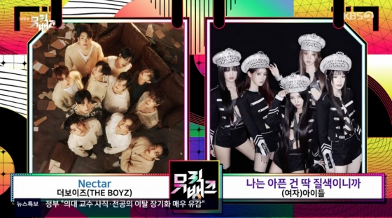 더보이즈는 'Nectar'로, (여자)아이들은 '나는 아픈 건 딱 질색이니까'로 나란히 이름을 올렸다.