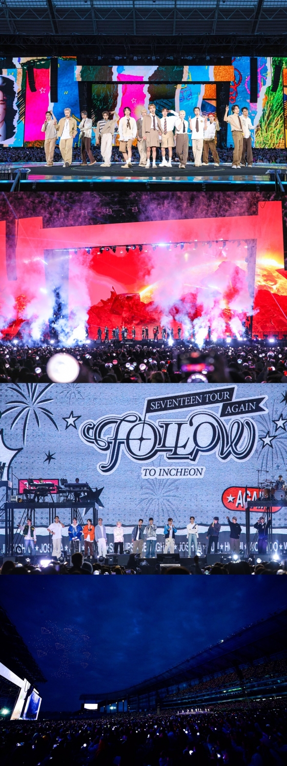 세븐틴은 3월 30일~31일 인천아시아드주경기장에서 열린 앙코르 투어 'SEVENTEEN TOUR 'FOLLOW' AGAIN TO INCHEON'을 통해 총 5만 6000여 명의 관객과 'TEAM SVT'(팀 세븐틴)으로 하나 돼 대규모 축제를 즐겼다.