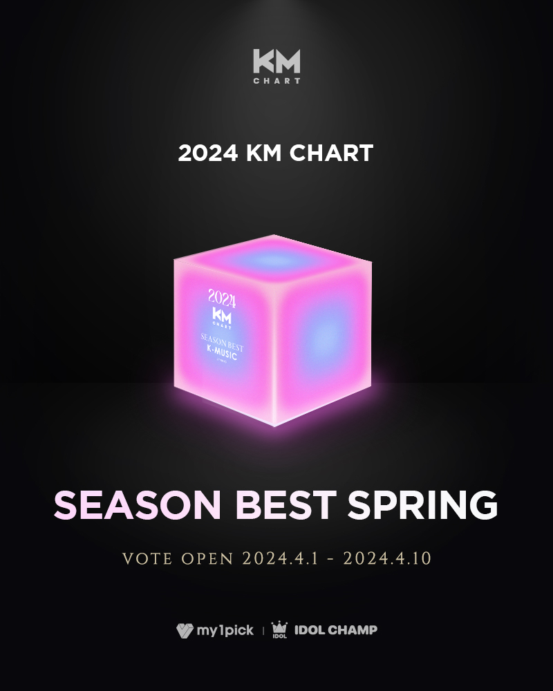 글로벌 스탠더드 K팝 차트 'KM차트'는 1일 '2024 KM차트 시즌베스트 스프링'에 노미네이트된 아티스트들의 명단을 공개했다. 이와 더불어 해당 후보들의 선호도 투표가 1일부터 오는 10일까지 애플리케이션 '마이원픽'과 '아이돌챔프'를 통해 진행된다고 밝혔다.