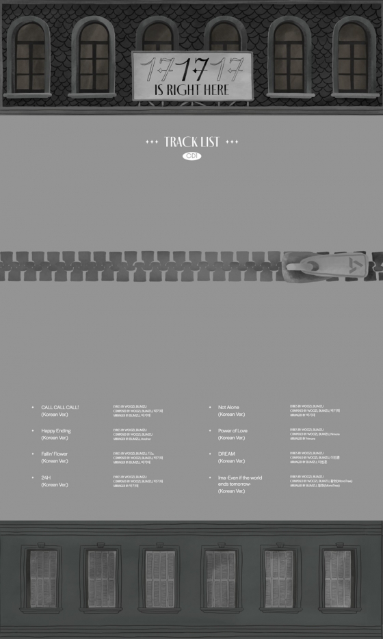 CD1에는 일본 데뷔앨범의 타이틀곡 'CALL CALL CALL!'을 비롯해 'Happy Ending', 'Fallin' Flower', '24H', 'Not Alone', 'Power of Love', 'DREAM', 'Ima -Even if the world ends tomorrow-' 등 지금까지 나온 일본 앨범 타이틀곡을 한글로 번안한 8곡이 담겨 있다. 특히, 지퍼로 닫혀 베일에 감추어진 트랙에 궁금증을 더하고 있다.