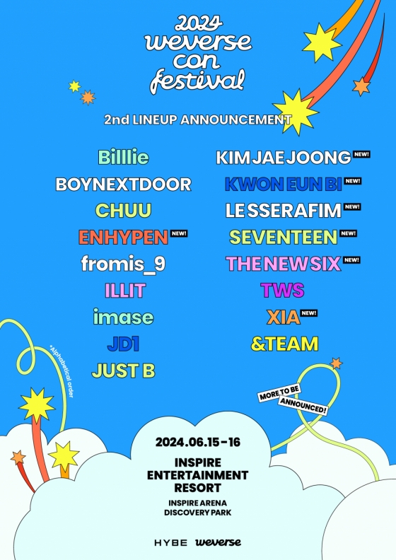 하이브는 3일 '2024 위버스콘 페스티벌(Weverse Con Festival)'의 2차 라인업을 글로벌 팬덤 라이프 플랫폼 위버스(Weverse)와 위버스콘 페스티벌 홈페이지에 공개했다.