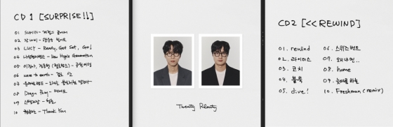페퍼톤스(신재평, 이장원)는 지난 4일 공식 SNS에 20주년 기념 앨범 'Twenty Plenty'(트웬티 플렌티)의 트랙리스트를 업로드했다. 공개된 트랙리스트 이미지에는 CD 1 'SURPRISE!!'와 CD 2 '<