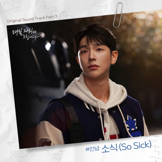 본편 공개에 앞서 OST로 먼저 분위기를 예열 중인 '매일 재회해 드립니다'의 OST Part.3 #안녕의 '소식 (So Sick)'은 8일 오후 6시 전 음원사이트에서 발매됐다.