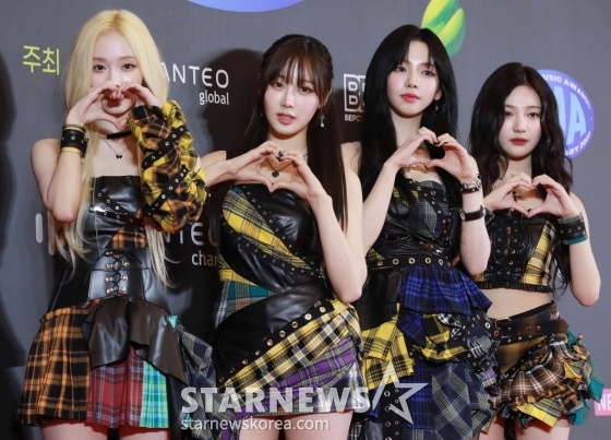 걸그룹 에스파가 18일 오후 서울 동대문디자인플라자(DDP)에서 진행된 ‘31주년 한터뮤직어워즈 2023’ 레드카펫 행사에 참석해 포즈를 취하고 있다. /2024.02.18 /사진=이동훈
