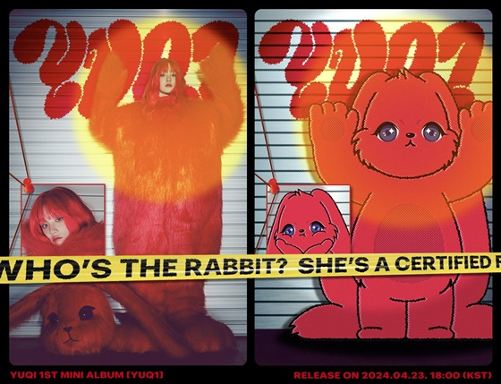 공개된 이미지 속 우기는 토끼 탈을 쓴 채 러블리하면서도 매혹적인 비주얼을 자랑하는가 하면, 폴리스 라인 테이프 위 'WHO'S THE RABBIT? '(후즈 더 래빗?)이라는 문구가 담겨 궁금증을 유발한다.