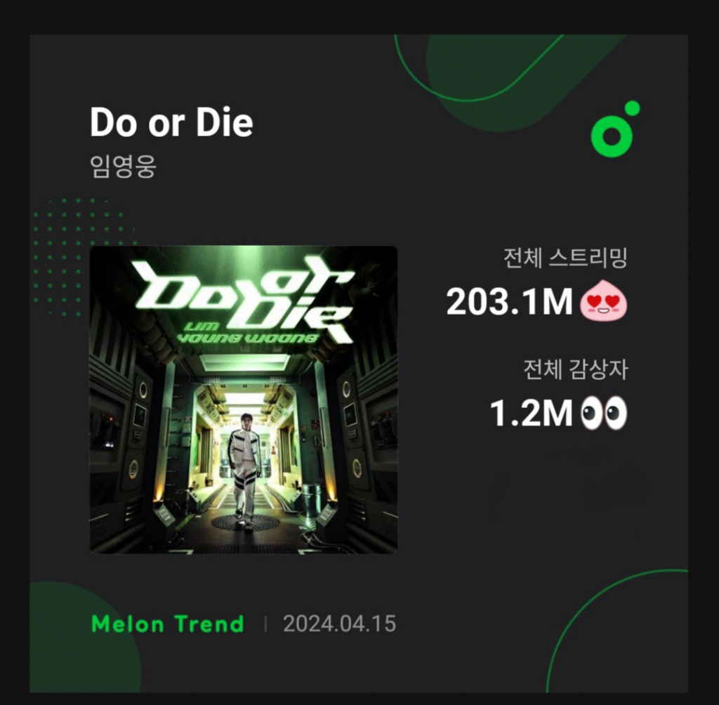 지난해 10월 9일 공개된 'Do or Die'는 4월 15일 기준 멜론 스트리밍 2억 310만을 기록했다. 공개 190일 만이다.