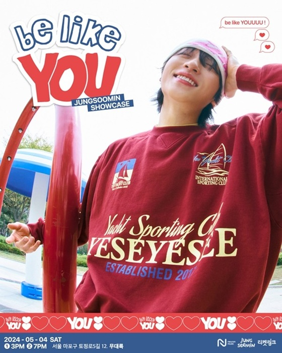 한편 정수민의 팬 쇼케이스 'be like YOU'는 오는 18일 오후 8시부터 온라인 티켓 플랫폼 티켓링크를 통해 예매할 수 있다.