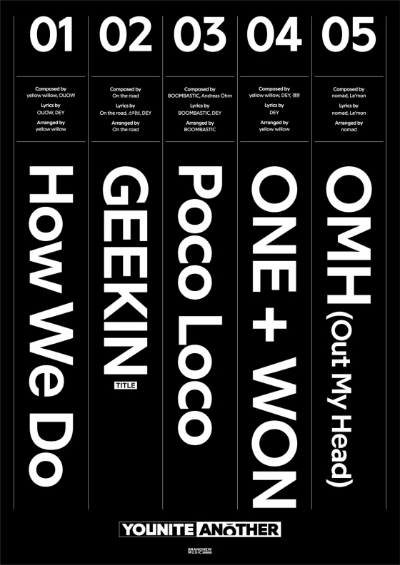 브랜뉴뮤직 소속 보이그룹 YOUNITE(유나이트, 은호, 스티브, 현승, 은상, 형석, 우노, DEY, 경문, 시온)가 새 앨범 'ANOTHER'의 트랙리스트를 공개했다.
