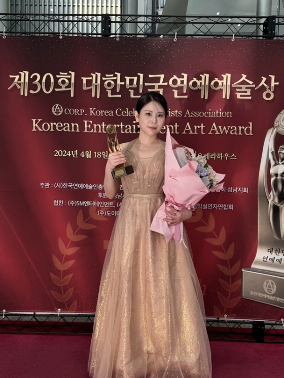 최향은 지난 18일 성남아트센터 오페라하우스에서 열린 '제30회 대한민국 연예예술상'에서 신인가수상을 받았다. 데뷔 전부터 수십여 개의 가요제에 참가, 상을 휩쓸며 재능을 드러냈던 최향은 최근 '미스트롯3'에서도 인상적인 활약을 보여주며 추후 가요계를 이끌 가수로 성장할 무한한 가능성을 인정받았다.