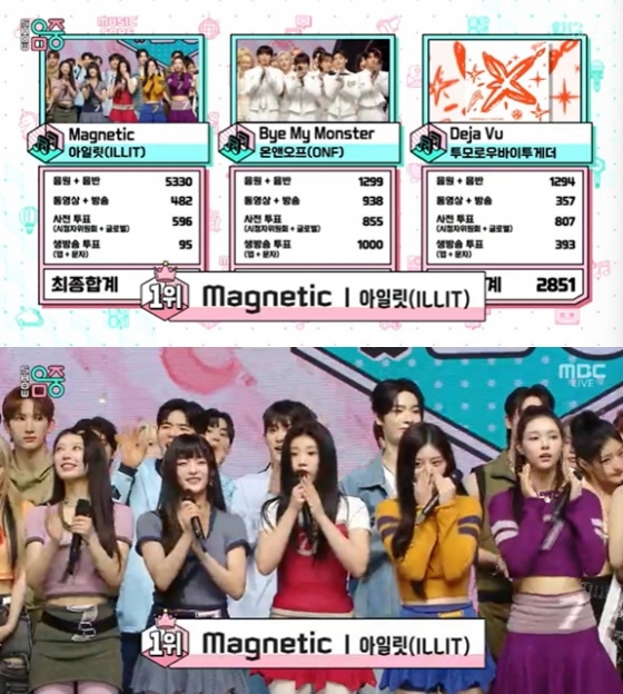 20일 오후 방송된 MBC 음악 프로그램 '쇼! 음악중심'(이하 '음중')에서는 아일릿이 1위를 차지했다. 이날 4월 3주차 1위 후보로 아일릿 'Magnetic', 온앤오프 'Bye My Monster', 투모로우바이투게더 'Deja Vu'가 올랐다.