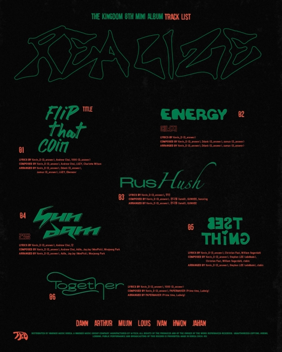 더킹덤, 새 앨범 'REALIZE' 트랙리스트 공개..타이틀곡은 'Flip that Coin'