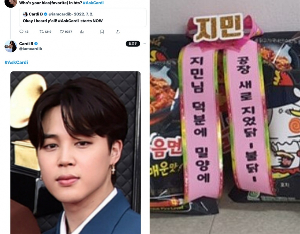 한국 음식에 대한 전 세계인의 관심과 수요가 폭발적인 늘어나면서 한류 열풍과 함께 지민이 K푸드 확산에 크게 기여했다는 분석이 쏟아지고 있는 가운데 지민의 영향력으로 세계적인 홍보 효과를 누린 불닭볶음면의 '불닭 챌린지'에 이번엔 미국의 유명 래퍼 카디비(Cardi B)가 가세했다.