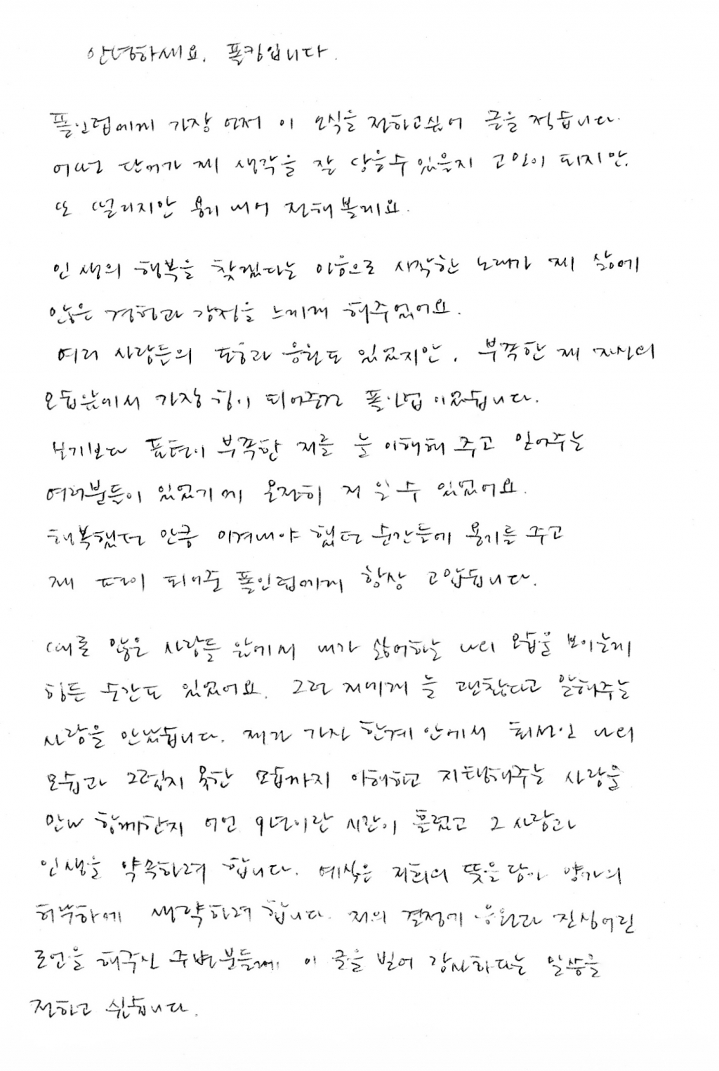 늘 그랬듯 노래하는 폴킴으로 제가 받은 고마운 마음 잊지 않고 성장하는 모습 보여드리겠습니다.