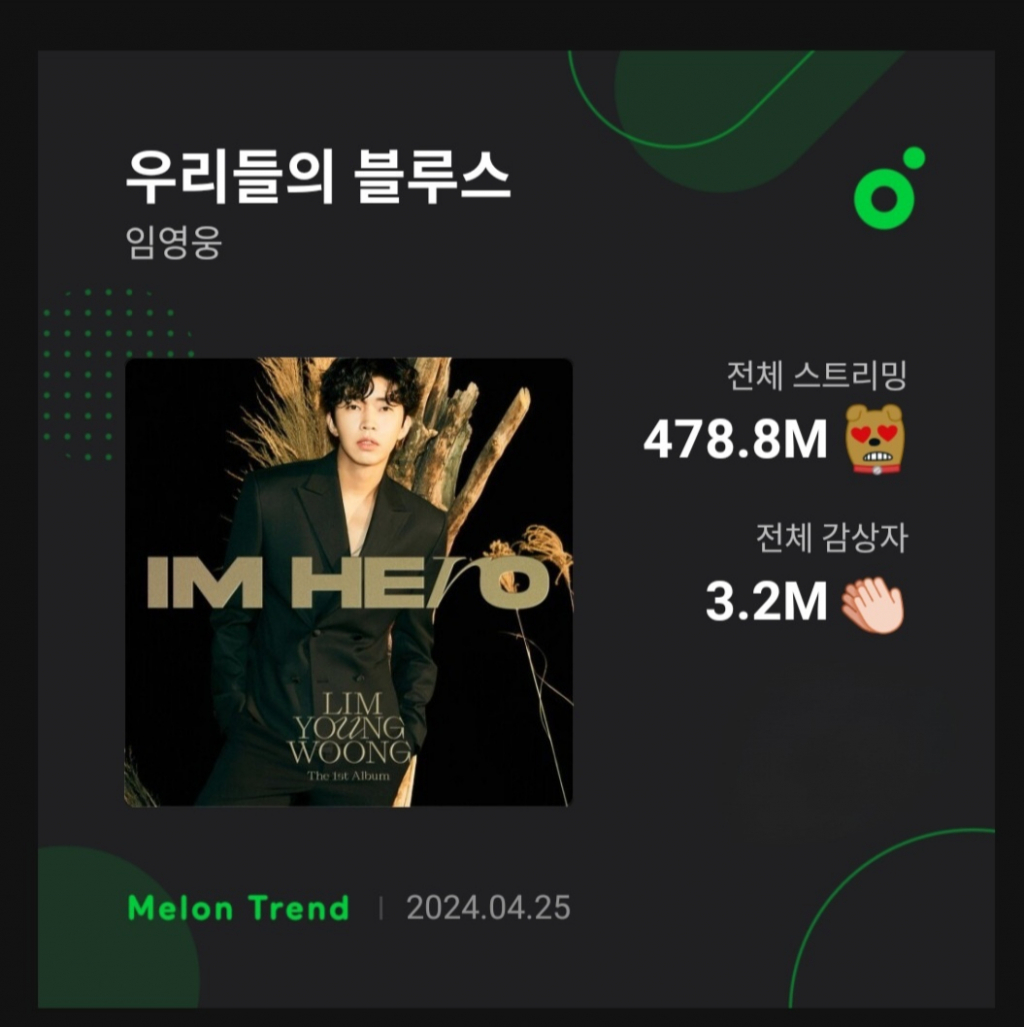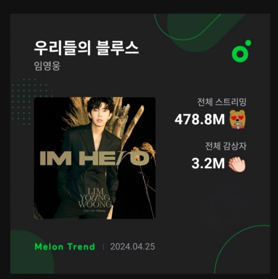 2022년 5월 2일 발매된 임영웅 첫 정규 앨범 'IM HERO' 수록곡 '우리들의 블루스'는 4월 25일 멜론에서 4억 7880만 스트리밍을 기록했다.