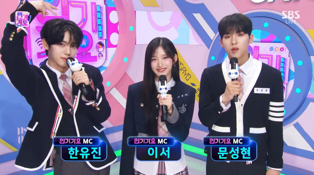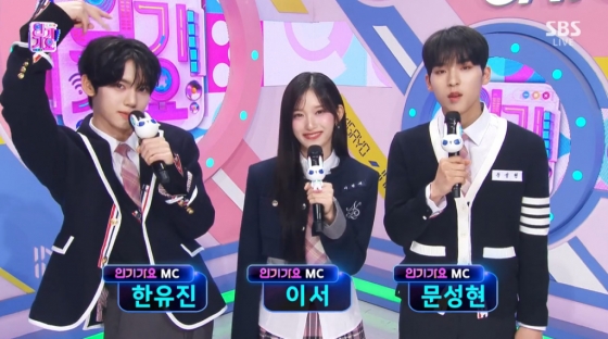 배우 문성현, 제로베이스원 한유진, 아이브 이서가 '인기가요' MC 신고식을 성공적으로 마쳤다.