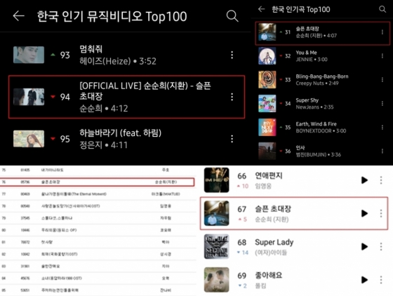 지난해 12월 발매한 지환의 '슬픈 초대장'은 현재 국내 음원 사이트에 실시간, 일간, 주간 차트와 노래방 차트, 유튜브 뮤직 차트까지 모두 역주행하고 있다.