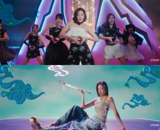 지난 29일 공개된 '해야'는 설화를 담아낸 가사와 파워풀한 힙합 장르가 돋보이는 곡. 이에 뮤직비디오에는 설화 분위기에 맞춰 아이브 멤버들이 한복을 모티브로 한 의상을 입고 산수화 배경에 노리개, 전통 부채, 곰방대 등이 담겼다.