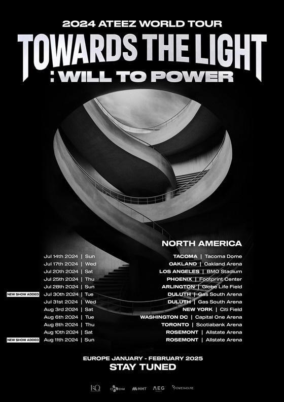 에이티즈는 2일 2024 월드투어 '투워즈 더 라이트 : 윌 투 파워(TOWARDS THE LIGHT : WILL TO POWER)'의 북미 공연 2회차 추가 소식을 알렸다.