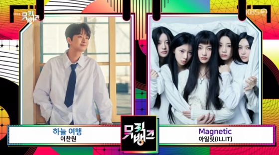 이찬원과 아일릿이 '뮤뱅' 트로피를 두고 1위 경쟁을 하게 됐다. 이찬원은 지난달 22일 발매한 두 번째 미니앨범 'bright;燦' 타이틀곡 '하늘 여행'으로, 아일릿은 데뷔곡 '마그네틱(Magnetic)'으로 '뮤뱅' 1위 후보에 이름을 올렸다.