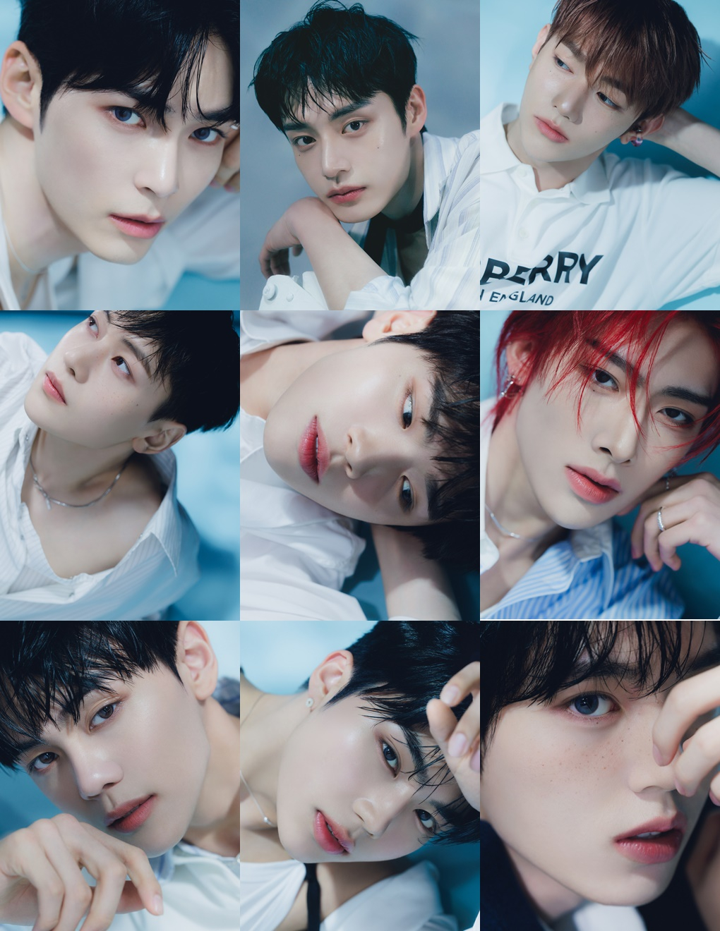 공개된 사진 속 ZEROBASEONE은 마치 물속을 연상케 하는 신비롭고 몽환적인 배경에서 등장, 블루 컬러를 포인트로 한 스타일링으로 9인 9색 청량 비주얼을 배가했다.