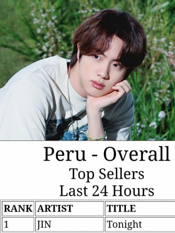 진의 첫 자작곡이자 솔로곡인 '이 밤'은 최근 우간다(Uganda), 페루(Peru) '아이튠즈 톱 송' 차트 1위에 오르며 35개국(지역) 1위를 기록했다.