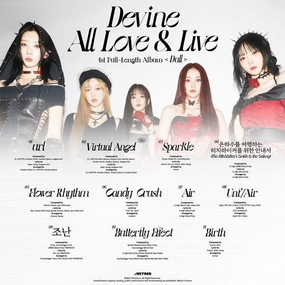 모드하우스는 11일 아르테미스의 공식 SNS 채널에 'Devine All Love & Live'라는 메시지와 함께 첫 정규앨범 '달(Dall)'의 트랙리스트를 공개하고 완전체 등장을 알렸다.
