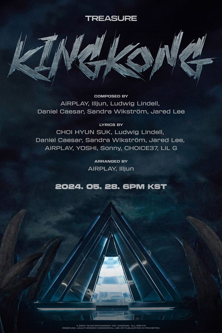 트레저의 디지털 싱글 'KING KONG'은 28일 오후 6시 발매된다. YG엔터테인먼트 측은 "멤버들 특유의 에너제틱함에 강렬한 카리스마를 최대치로 끌어올렸다. 트렌디한 감각의 개성 넘치는 사운드를 더해 기존 트레저의 음악과는 또 다른 신선함을 느낄 수 있을 것"이라고 전했다.
