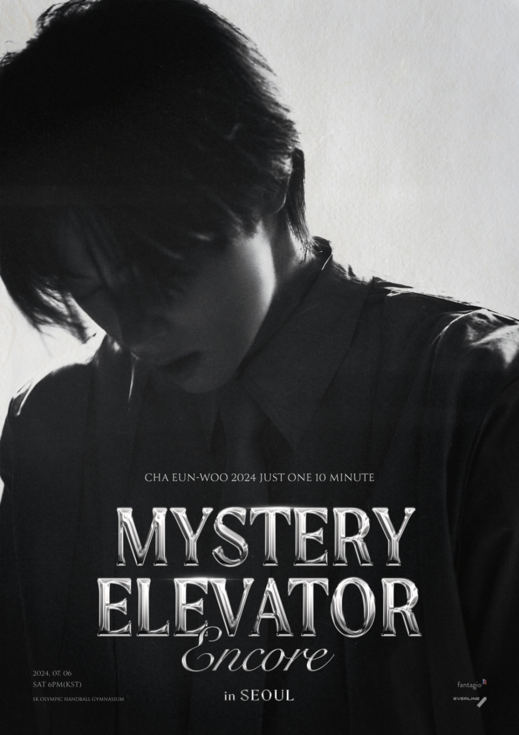차은우는 16일 오후 공식 SNS에 단독 팬콘 투어 '2024 Just One 10 Minute [Mystery Elevator]'(2024 저스트 원 텐 미닛 [미스테리 엘리베이터])의 앙코르 공연 개최를 알리는 포스터 이미지를 공개했다.