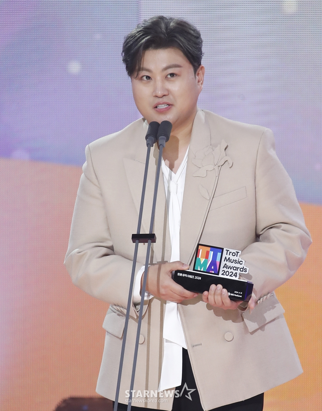 (서울=뉴스1) 권현진 기자 = 가수 김호중이 12일 오후 서울 마포구 상암동 SBS 프리즘타워에서 열린 '트롯뮤직어워즈 2024'에서 '최고의 가수상'을 수상한 뒤 소감을 말하고 있다. 2024.4.12/뉴스1 Copyright (C) 뉴스1. All rights reserved. 무단 전재 및 재배포, AI학습 이용 금지. /사진=(서울=뉴스1) 권현진 기자