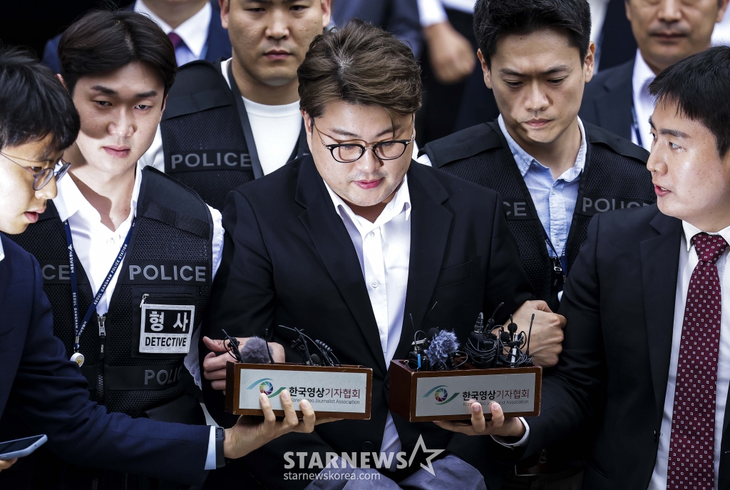 김호중 매니저에게 허위 자수를 지시한 혐의(범인도피교사)를 받는 소속사 생각엔터테인먼트 이광득 대표, 김호중 차량의 블랙박스 메모리카드를 제거한 혐의(증거인멸 등)를 받는 본부장 전 씨에 대한 영장실질심사는 각각 오전 11시 30분, 오전 11시 45분께 열렸다.