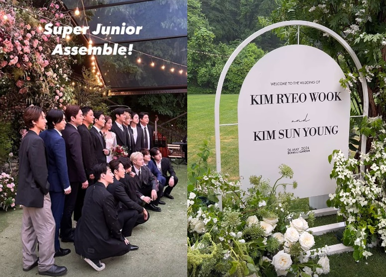 슈퍼주니어 려욱과 타히티 출신 아리의 결혼식에 슈퍼주니어 전, 현 멤버가 모두 모였다.