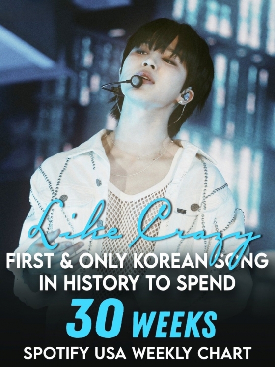 방탄소년단(BTS) 지민의 '라이크 크레이지'(Like Crazy)가 미국 스포티파이에서 또 한 번 새 역사를 썼다.