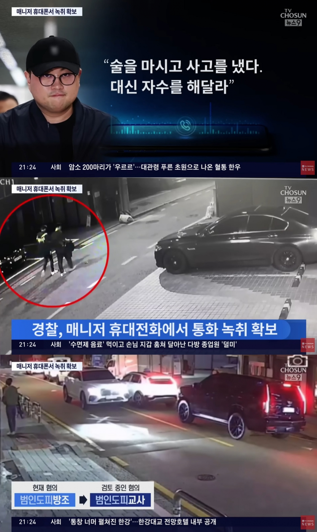 경찰은 녹취를 근거로 김호중에 대한 혐의를 기존보다 형량이 무거운 범인도피 교사로 변경하는 걸 검토하고 있다.