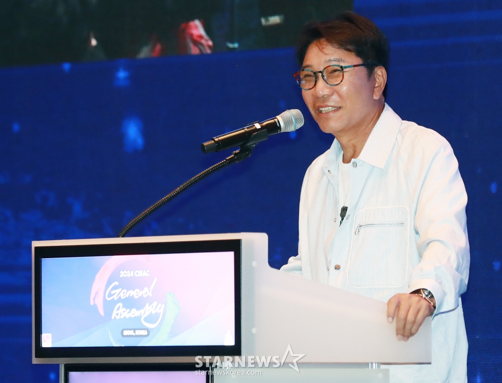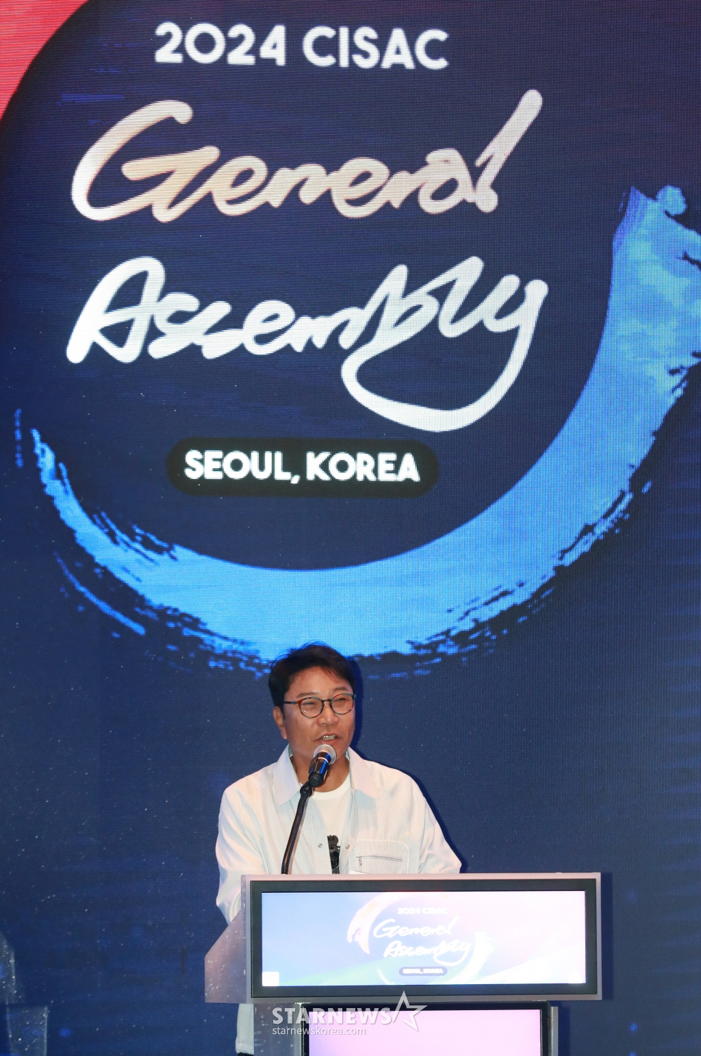 한국음악저작권협회는 30일 오전 서울 영등포구 여의도동 콘래드호텔에서 국제저작권단체연맹(CISAC) 정기 총회를 개최했다. 이날 KOMCA 추가열 회장, 문화체육관광부 유인촌 장관, SM엔터테인먼트 설립자 이수만, 한국영화감독조합 정회원인 배우 유지태, 조국혁신당 국회의원 가수 김재원(리아), DAMA 부회장 앙헬레스 곤잘레스 신데(Angeles Gonzalez Sinde), APRA 회장 제니 모리스(Jenny Morris), SACM 부회장 아르투로 마르케스(Arturo Marques)가 참석했다.