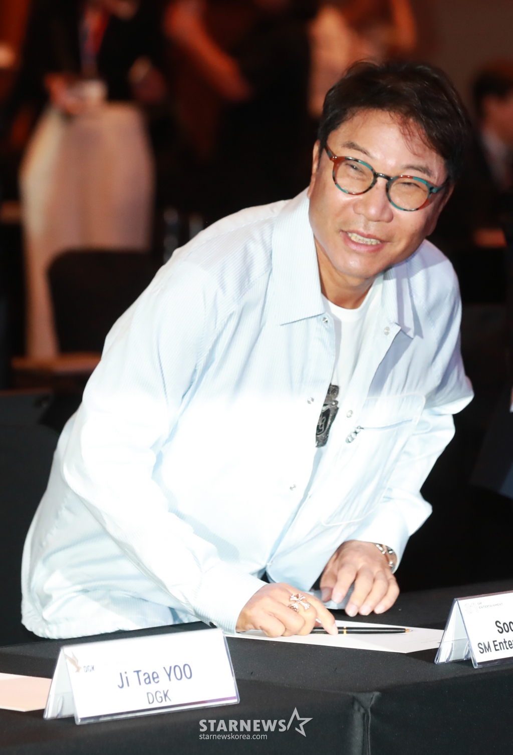이날 이수만은 SM 설립자이자 현(現) 블로밍그레이스 대표이사로 참석해 '문화의 국경을 넘다: K팝 사례 연구' 주제로 기조 연설했다. 이는 지난해 8월 '2023 동아시아미래포럼'에 선 이후로 약 9개월 만에 선 공식 석상이다.