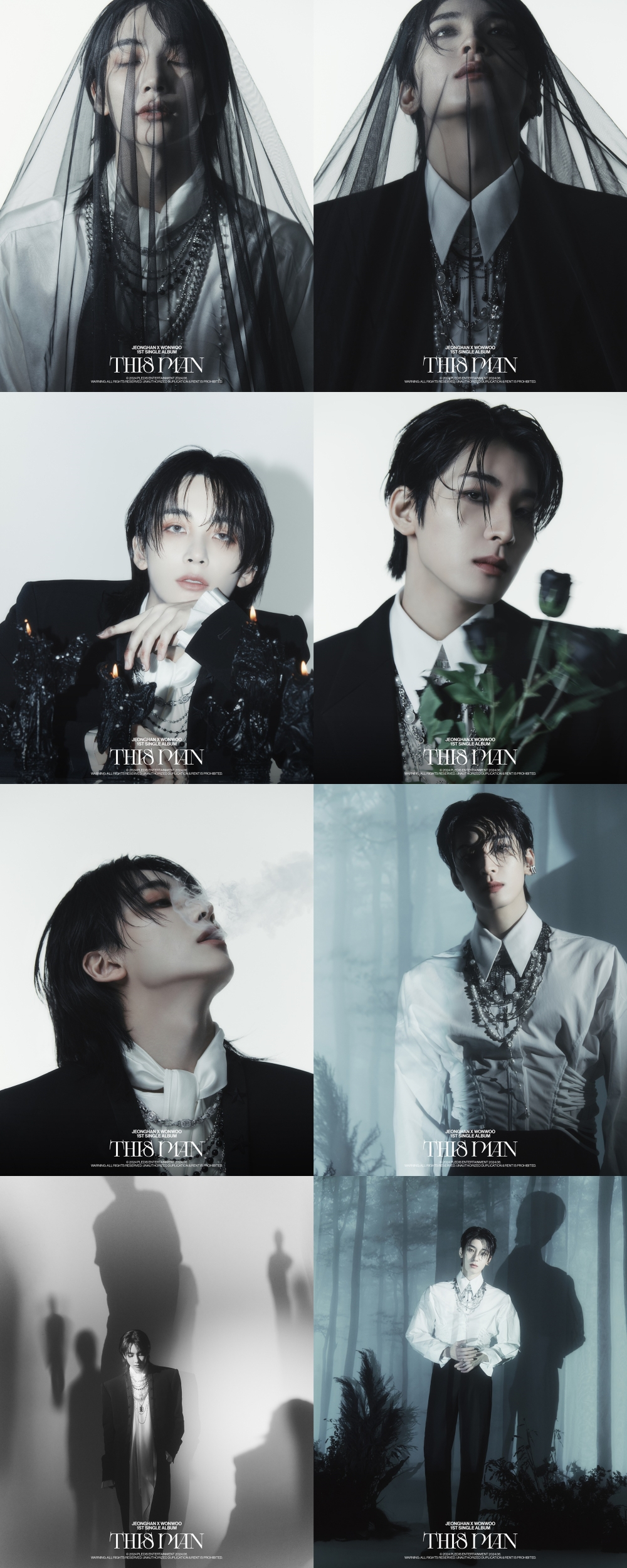 이 사진에서 두 사람은 차가운 분위기로 다가가기 어려운 느낌을 주면서도 치명적인 비주얼로 보는 이를 매혹한다. 이들의 얼굴을 가린 검은 면사포, 초에 까맣게 그을린 정한의 손가락과 입에서 내뱉는 듯한 연기, 원우 앞에 놓인 검은 장미 등 다양한 연출적 장치들이 호기심을 자극한다.