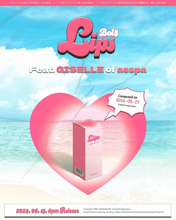 쇼파르엔터테인먼트는 지난 3일 공식 SNS를 통해 볼빨간사춘기 신곡 '립스(Lips)'의 티저 영상을 공개하며 베일에 싸여있던 '립스(Lips)'의 피처링 아티스트가 '에스파(aespa)' 멤버 지젤임을 밝혔다.