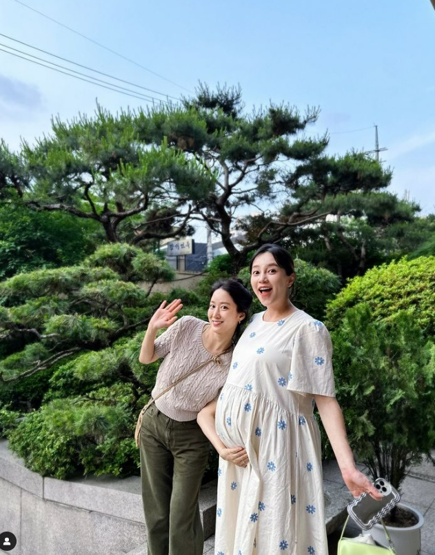 사진에는 전혜빈이 출산을 앞둔 아유미와 만난 모습이 있었다. 전혜빈은 만삭인 아유미의 배를 만지며 함께 설레는 모습을 보였다.