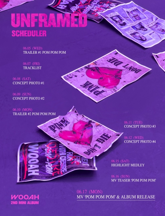WOOAH는 지난 4일 오후 공식 SNS를 통해 두 번째 미니 앨범 'UNFRAMED(언프레임드)'의 스케줄러 이미지를 공개했다.