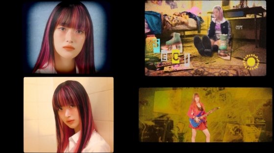 이어 서이는 붉은색 재킷과 스커트를 입고 록스타로 화려한 변신을 시도했다. 현란한 액세서리로 한껏 멋을 낸 서이는 기타를 들고 당당한 무드로 보는 이들의 감탄을 자아냈다. 특히 서이는 핑크색 머리를 완벽하게 소화하며 물오른 비주얼을 자랑해 신보에 대한 기대감을 높였다.