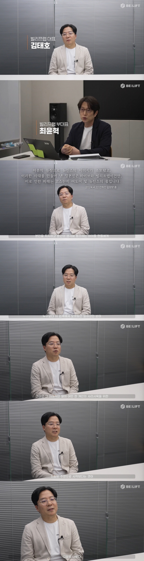 빌리프랩 김태호 대표가 어도어 민희진 대표가 제기한 표절 논란을 정면 반박했다. 빌리프랩은 아일릿, 어도어는 뉴진스 소속사다.