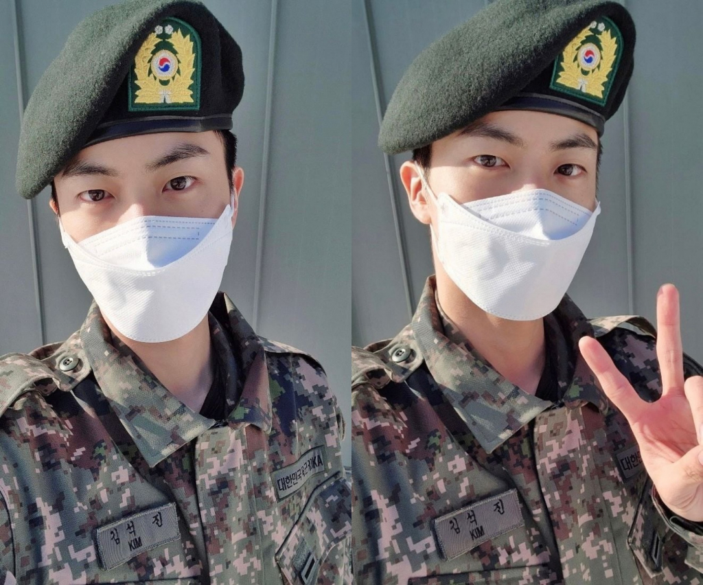 평소 팬사랑이 남달랐던 진이기에 입대 후에도 그의 팬바보 면모는 빛났다. 진은 지난해 1월 18일, 신병교육대 수료 후 팬 소통 플랫폼 위버스에 "재밌게 잘 생활하고 있습니다. 군대 허가 받고 사진 한 장 올려봅니다. 아미들도 항상 행복하시고 잘 지내세요"라며 군복을 입고 촬영한 셀카 세 장을 업로드했다.