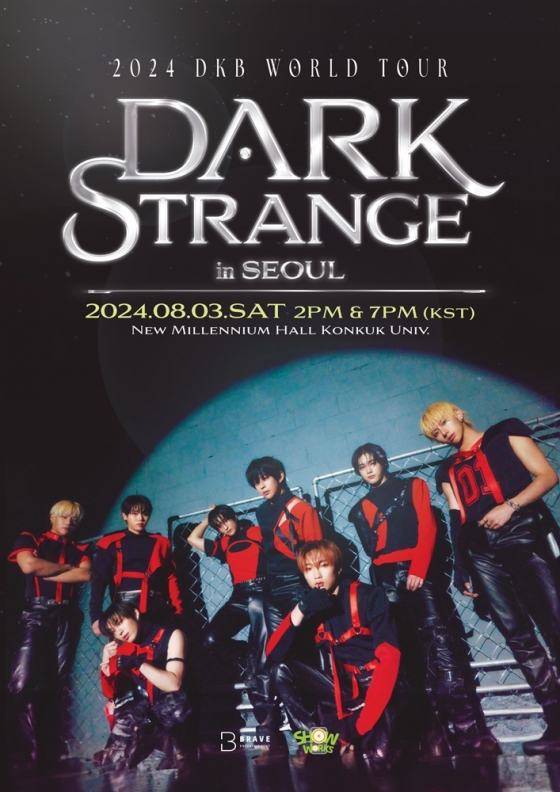 다크비(이찬, 디원, 지케이, 희찬, 룬, 준서, 유쿠, 해리준)는 12일 공식 SNS에 첫 월드투어 '2024 DKB WORLD TOUR 'DARK STRANGE''(이하 'DARK STRANGE') 서울 공연의 포스터를 게재했다. 이에 따르면, 다크비는 오는 8월 3일 서울 광진구 건국대학교 새천년관 대공연장에서 팬들과 만난다.