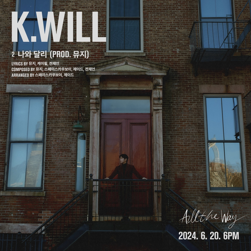 보컬리스트 케이윌(K.will)이 신보 두 번째 트랙 '나와 달리 (Prod. 뮤지)' 콘텐츠를 공개했다.