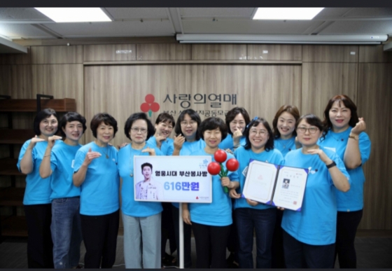 임영웅 팬클럽 '영웅시대 부산봉사방'은 임영웅의 생일(6월 16일)을 맞아 지난 13일 사랑의열매 부산사회복지공동모금회(회장 최금식·부산사랑의열매)에 성금 616만 원을 기탁했다.
