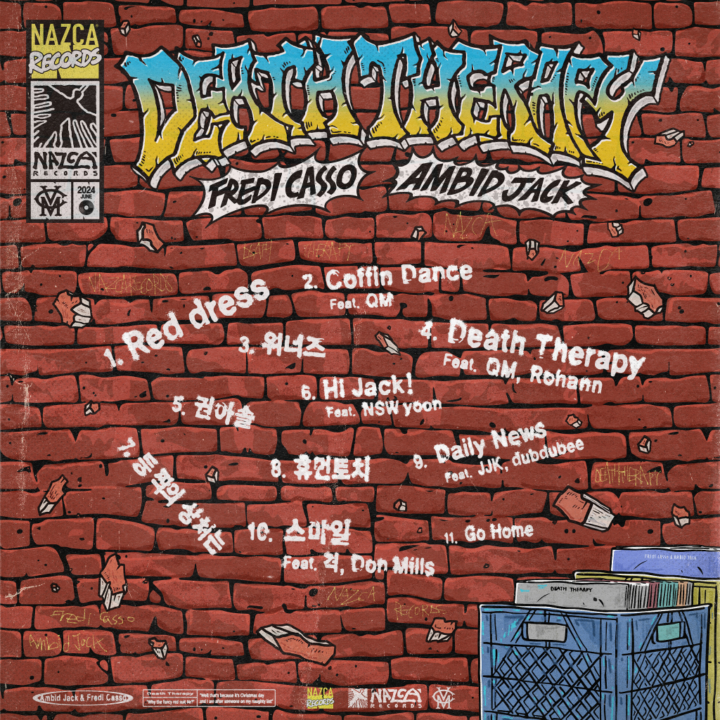 오는 16일 정오 국내외 온라인 음원 사이트를 통해 나즈카 레코즈 소속 래퍼 앰비드 잭(Ambid Jack)과 프로듀서 프레디 카소(Fredi Casso)의 첫 합작 정규 앨범 '데스 테라피'(Death Therapy)가 발매된다.