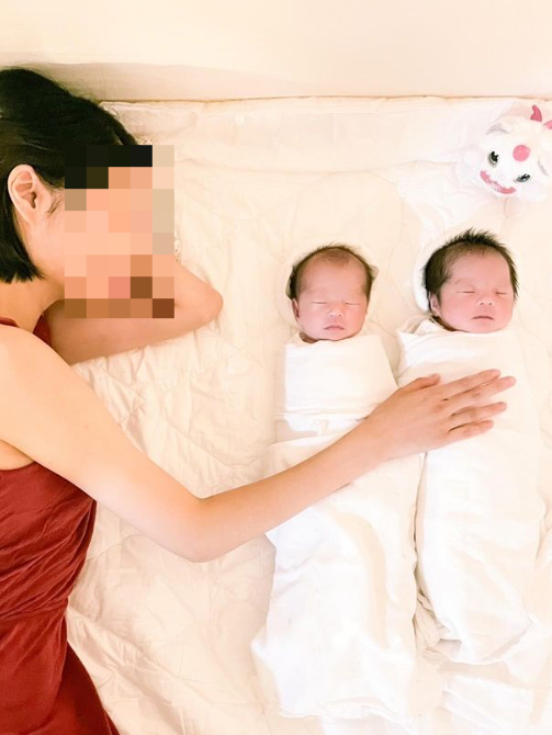 이어진 사진에는 뛰어난 미모를 자랑하는 윤한의 아내가 쌍둥이 자녀와 함께 누워있는 모습 역시 담겨있다.