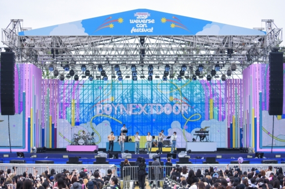 보이넥스트도어(성호, 리우, 명재현, 태산, 이한, 운학)는 지난 15일 인천 인스파이어 엔터테인먼트 리조트에서 열린 '2024 위버스콘 페스티벌'(Weverse Con Festival, 이하 '위콘페')에 참석했다. 지난해에 이어 두 번째로 '위콘페'에 선 이들은 야외와 실내 공연장 모두에서 퍼포먼스를 펼쳤다. 각 공연장의 특색에 맞춰 편곡한 노래들로 세트리스트를 꾸리는 섬세함이 돋보였다. 또한 실내 공연에서는 트리뷰트 아티스트인 박진영과 깜짝 컬래버레이션까지 진행해 관객들에게 다양한 볼거리를 선사했다.